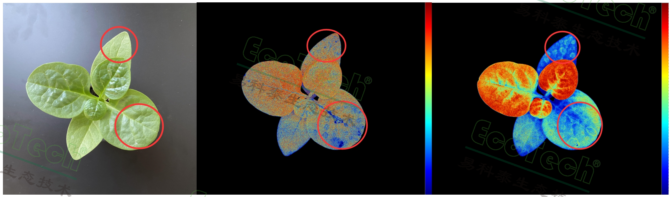 木耳菜植株葉片施加ABA(紅圈位置)快速檢測(EcoTech®實驗室提供)