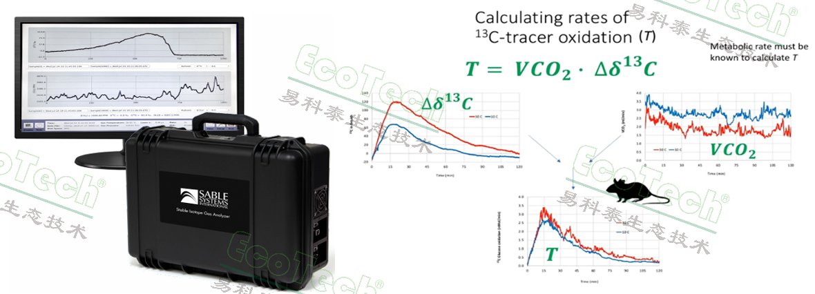 通過代謝示蹤劑(如碳-13標記物,就像給生物分子裝上了精確GPS定位器)跟蹤,以及呼吸穩(wěn)定同位素分析儀實時監(jiān)測動物呼出氣體中的13CO2來區(qū)分量化動物能量代謝中消耗的哪些能量物質等,可以更深入的研究代謝生理學機制(如代謝靈活性)等,而這種定量測量特定能量物質氧化速率往往也需要知道VCO2。