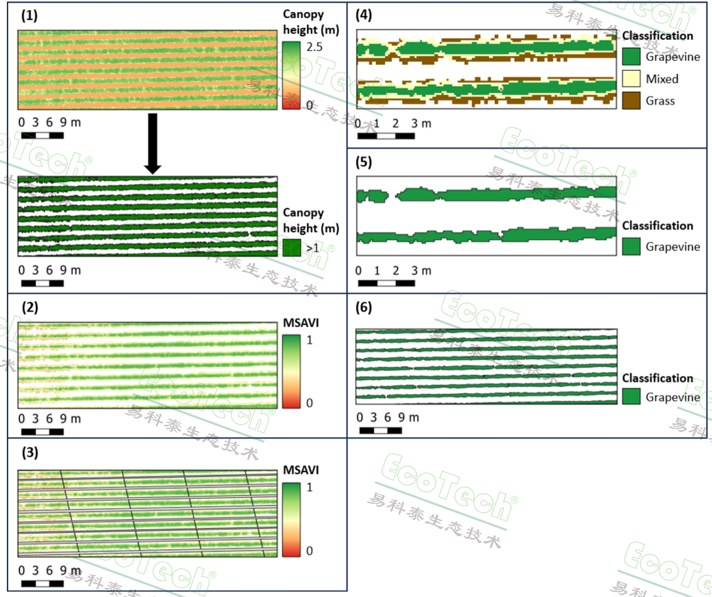 圖2:綜合利用多源遙感數(shù)據(jù)分割純凈葡萄植株的流程