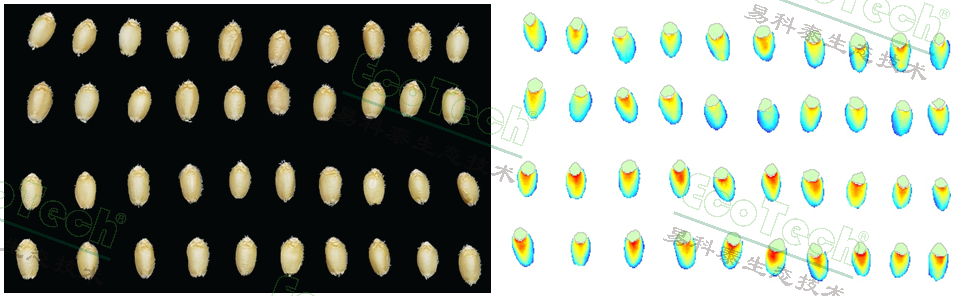 左圖:紫花苜蓿種子形態(tài)分析(EcoTech®實(shí)驗(yàn)室供圖)