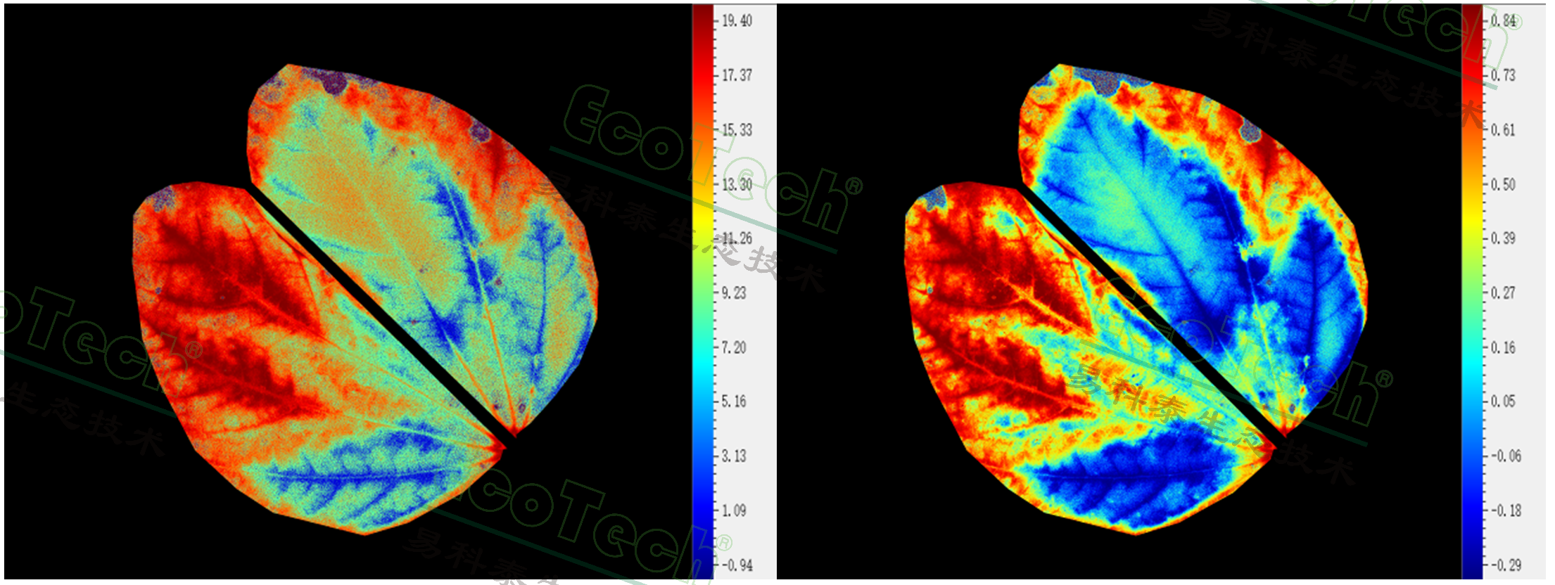 葉綠素?zé)晒鈪?shù) 左圖Rfd;右圖:NPQ